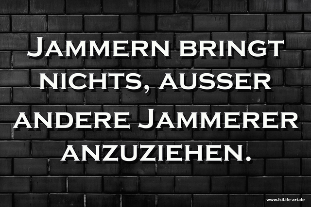Jammern ist ein Ventil, um den ersten Frust abzulassen. Aber dauerhaft führt es in eine Opferrolle und verschließt den Blick auf das Wesentliche.... und zwar auf die Zukunft, die man selbst gestalten kann und muss.