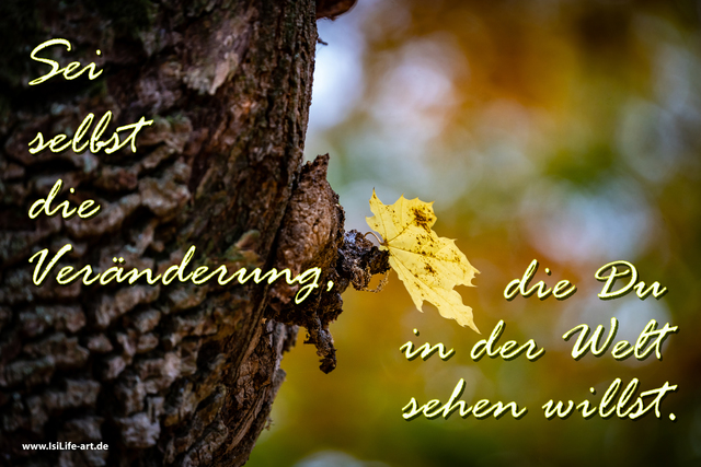 Wenn man sich mit den Menschen unterhält, dann wollen viele eine Veränderung im Leben.... vom Partner, vom Hund, von der Schwiegermutter, vom Chef und von den Kollegen. Aber die eigentliche Veränderung fängt stets bei sich selbst an. Denn das ist es, was man auch tatsächlich beeinflussen kann.