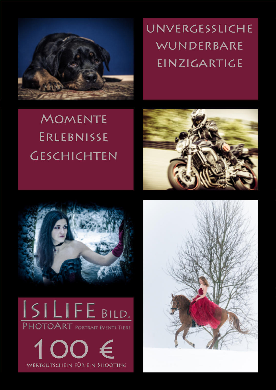 Ob ein Mini-Shooting, Otdoor oder LostPlace.... ob Familienshooting oder ein Erlebnis mit einem Haustier - hier hat man ein besonderes Geschenk für besondere Menschen.